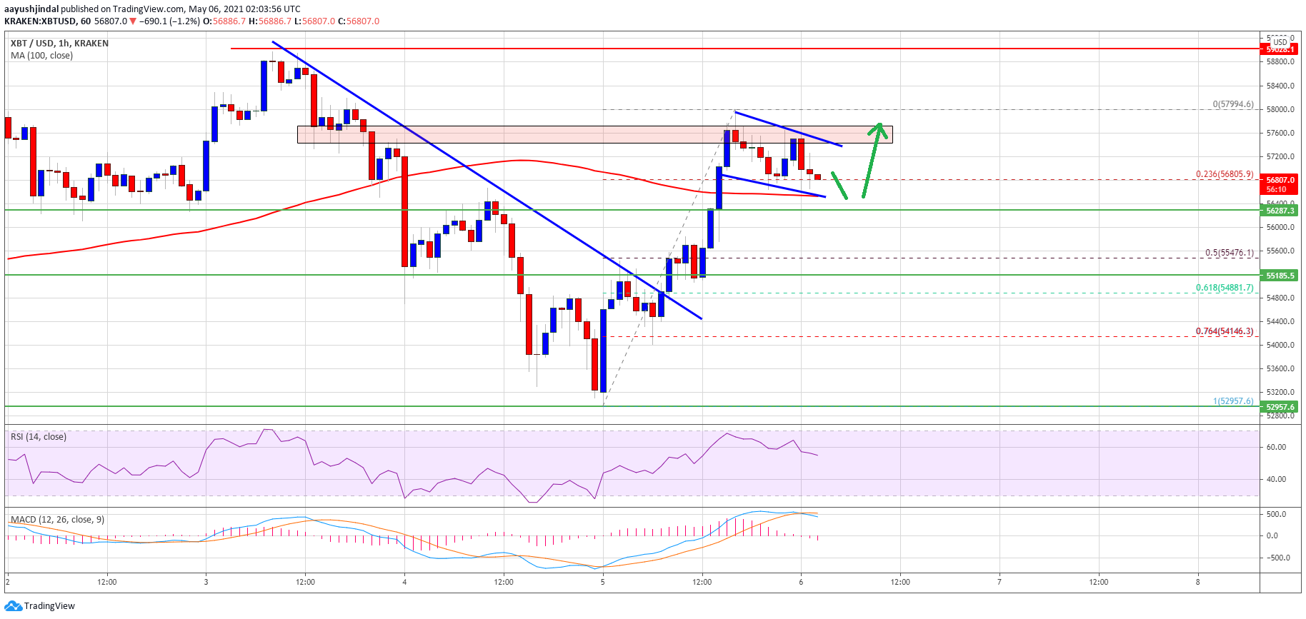 TA: Bitcoin Reclaims 100 SMA, Here’s Why BTC Could Surge above $58K