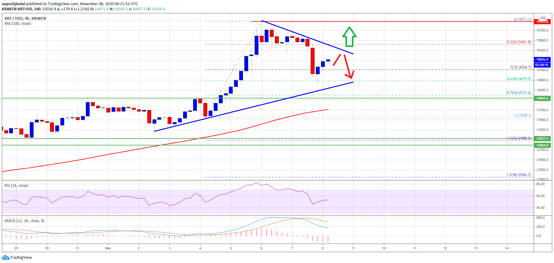 Bitcoin price traded to a new multi-month high near $15,970 before correcting lower against the US Dollar. BTC is holding the $14,500 support and it could start another rally. Bitcoin started a sharp downside correction after trading close to the $16,000 resistance. The price corrected lower below $15,000, but it is still well above the […]
