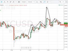 Bitcoin price advanced to around $240 today after we spotted a bullish wave which started yesterday. Today's bitcoin price increase is highly considerable given the bearish wave that has been dominating the market throughout the past 2 weeks. By studying the 1 hour Bitfinex (BTC/USD) charts from tradingview.com (look at the below charts), we can notice that today's trading led to a repetitive pattern of candlesticks. 3-5 green bullish candlesticks followed by 2-3 red bearish candlesticks which is a pattern that has been pushing the price upwards earlier today. Each bullish wave is followed....