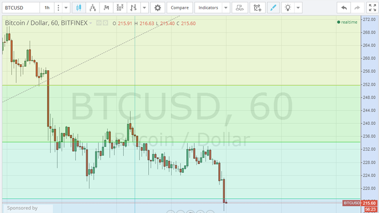 Bitcoin price continued falling yesterday proving how the bears are now taking over the market. With a continuation of the downtrend, $200 support level is not far away. Bitcoin price fell yesterday from around $232 to $217 at the time of writing of this article. The $230 level acted yesterday as a resistance level that resisted the attempt at revering the bearish trend. By studying the 1 hour Bitfinex (BTC/USD) chart from tradingview.com (look at the below chart), we can observe that bitcoin price has been between the 50% and 62% levels as per the Fibonacci retracements we plotted on the....