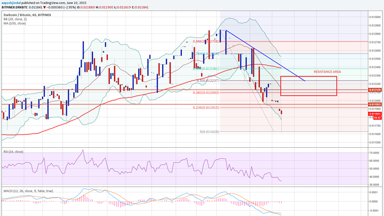 Key Highlights. Dash price fell sharply as forecasted in Yesterday's technical analysis, as there was a crucial break noted. The downside stalled around 0.0116BTC, representing an important support area. Buyers are in control, which is why selling rallies might not be a bad idea in the short term. Dash price moved lower sharply once sellers managed to gain pace. Looking ahead, the broken support at 0.0120BTC could act as a hurdle. 0.0120BTC as a Resistance. Dash price Intraday breached an important support area at 0.0120BTC, which represents a major pivot area for both buyers and sellers.....