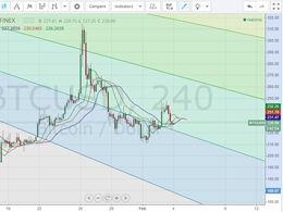 Bitcoin price started the day by rising from around $236 to more than $248 before a bearish downtrend pulled the price down back to around $226 at the time of the writing of this article. As the price is advancing, it's logical to see downward price movements as traders take the profit by closing their long positions. Although the bullish rally slowed down today, it's quite obvious that bitcoin price won't break the $200 support level, maybe because of the psychological makeup of the traders who think that a bitcoin is worth more than $200. By plotting the Fibonacci retracement fan on the....